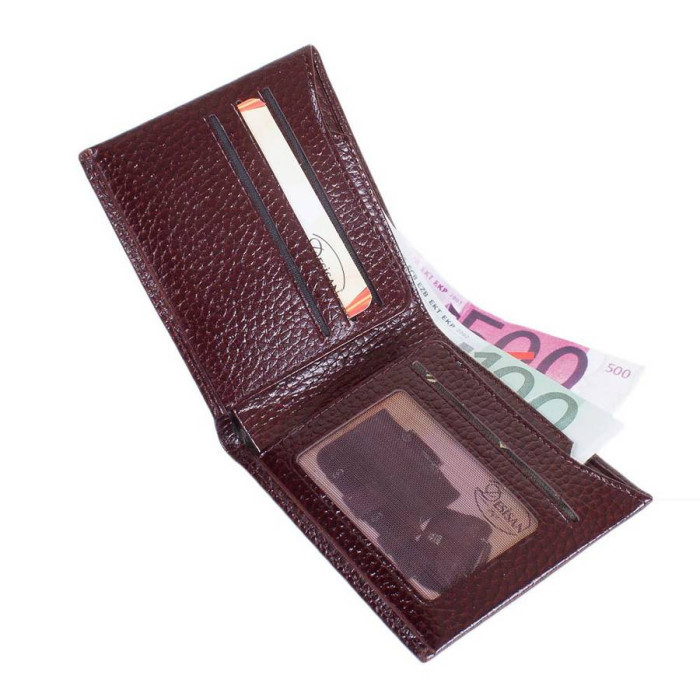 Количество основных отделений (для купюр): 2. Крайнее из них на застежке молнии. Отделения для визиток, банковских и дисконтных карт: 7. Отделения для фотокарточек, пропусков, проездных билетов и прочих документов: 1 (имеет прозрачное окошко). Материал изделия: кожа флотар. Цвет: темно-коричневый. Цвет фурнитуры: серебро. Размеры (X*Y*Z): 9,5*12,5*1,5 см. Ширина в раскрытом виде - 23,5 см. Аксессуар выполнен без застежки. Изделие упаковано в фирменную картонную коробку. Страна происхождения ТМ Desisan - Турция. Гарантия: 1 месяц.