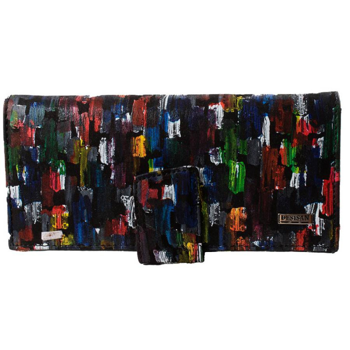 Размеры (X*Y*Z): 19*8,5*2,5 см. Материал изделия: кожа. Цвет изделия: разноцветный. Цвет фурнитуры: серебро. Количество основных отделений (для купюр): 2. Отделения для карт: 17. Отделения для документов: 2 (имеют прозрачные окошки). Дополнительные отделения: 3. Одно закрывается при помощи молнии Карман-монетница служит перегородкой между отделениями для купюр и закрывается на молнию. Изделие закрывается на клапан с механической кнопкой. Изделие упаковано в фирменную картонную коробку. Страна происхождения торговой марки DESISAN - Турция. Гарантия: 1 месяц.