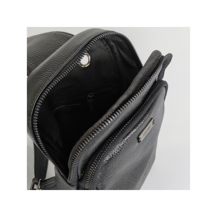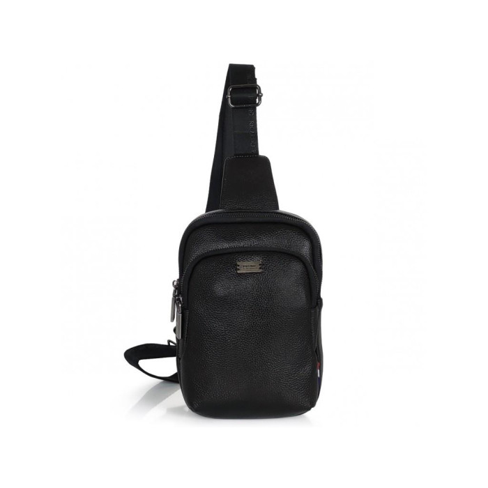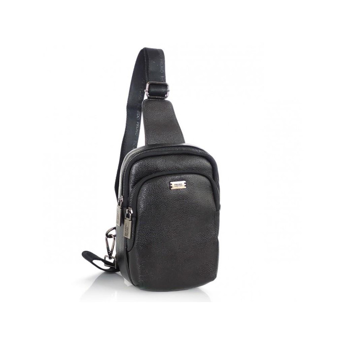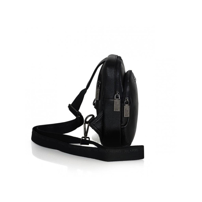 Стильный кожаный мужской слинг Ricardo Pruno RP-F-A25F-1922A изготовлен из натуральной кожи черного цвета имеющую зернистую текстуру.