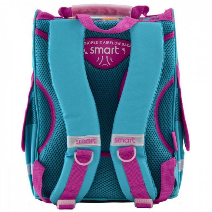 Особенности: изготовлен из полиэстера 300D (высокая степень водонепроницаемости), что обеспечивает сохранность вещей вашего ребенка в любую непогоду, а плотный каркас гарантирует полную целостность содержимого. Ортопедическая спинка уменьшает напряжение мышц спины, плеч и шеи, и обеспечивает правильную осанку. Изнутри спинка жесткая, а снаружи обшита специальными подушечками, которые обтянуты "дышащим" материалом Air Mesh. Также у рюкзака комфортные мягкие лямки регулируемой длины. Рюкзак имеет плотное дно. Есть удобная плотная ручка для ношения в руке. В целях безопасности предусмотрены светоотражающие элементы с разных сторон рюкзака.