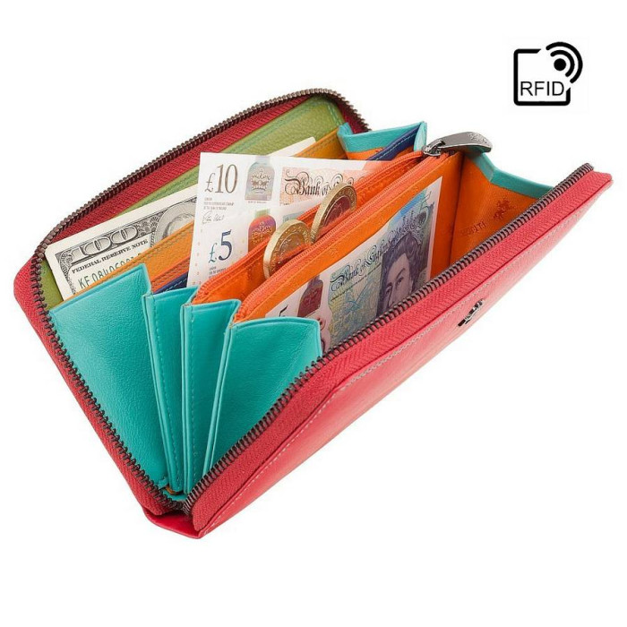 Характеристики - Кошелек женский Visconti SP33 Iris c RFID (Red Multi) Материал натуральная кожа ..