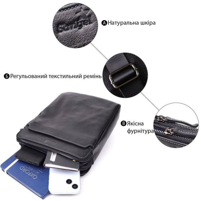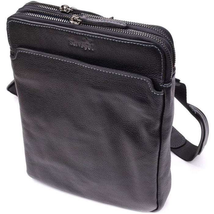 Мужская вертикальная сумка от украинского бренда SHVIGEL выполнена из натуральной черной мелкозернистой кожи, которая сочетает прочность и изысканный внешний вид. Компактные размеры и продуманная организация внутреннего пространства позволяют удобно разместить документы, планшет или личные вещи.