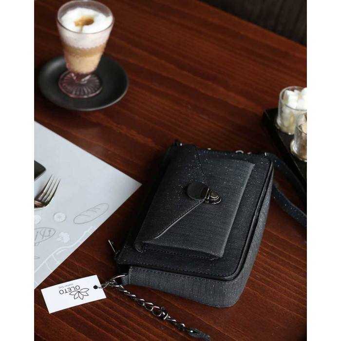 В комплекте есть регулируемый плечевой ремень, украшенный цепочкой.