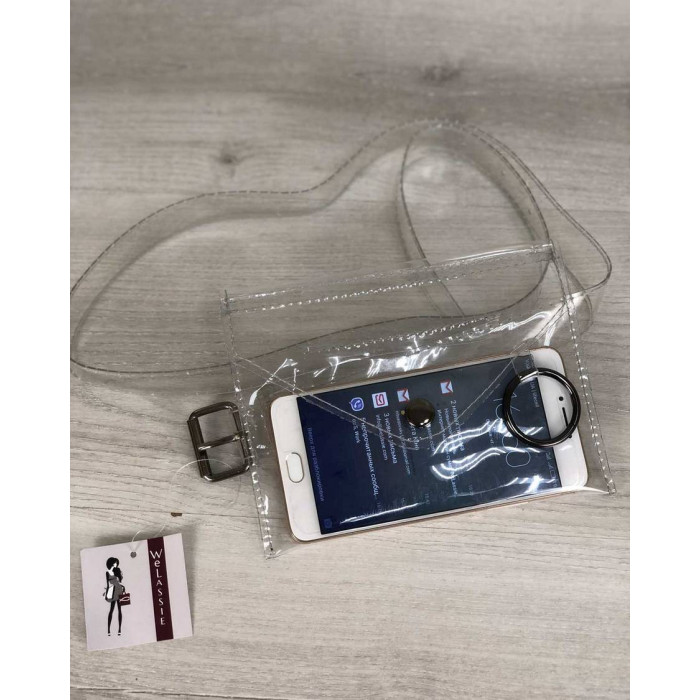Молодежная кожаная сумка на пояс Moris изготовлена из качественного прозрачного силикона. Имеет одно отделение, которое открывается при помощи кнопки. Сумка без подклада, внутри имеется отделение. Диаметр кольца на сумке 4 см.