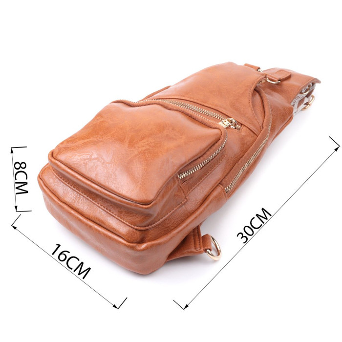 Экокожа - высококачественная альтернатива натуральному материалу, которая очень устойчива к трению, к низким температурам, отлично носится в отличии от других искусственных материалов, а также имеет гипоаллергенный состав в отличии от натуральной кожи.Предлагаем Вашему вниманию удобную слинг сумку из экокожи в интересном рыжем цвете. Данная модель состоит из одного основного отделения которое закрывается на молнию и в котором находится карман на молнии и три кармана для кредитных карт, а также трех карманов снаружи и одного отверстия для кабеля или наушников, что очень удобно в современной мире. Основной фишкой модели является удобный регулируемый плечевой ремешок в этническом стиле, что очень модно уже несколько сезонов.