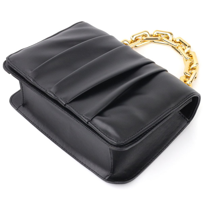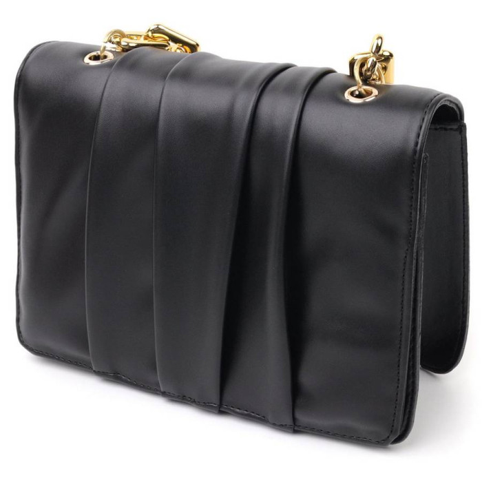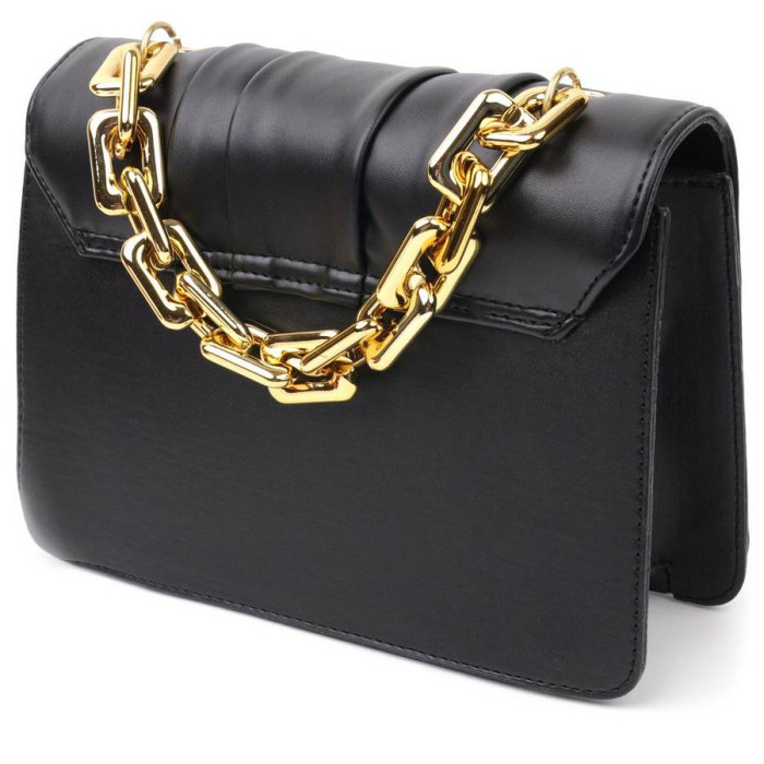 Восхитительная сумка черного цвета, из качественной эко-кожи. Сумка имеет стильный дизайн, красивую пластиковую ручку-цепочку, для переноса в руке, а также регулируемый наплечный ремень из металлической цепочки и вставки с эко-кожи. Модель долгое время остается в идеальном состоянии, такую сумку приятно носить. Может быть отличным вариантом для подарка стильной женщине.