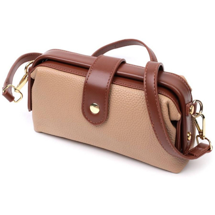 Оригинальная женская сумка с необычной защелкой, которая однозначно привлечет взгляды окружающих. Изделие пошито из качественной натуральной кожи, которая долго носится и не теряет свой первоначальный вид. Аксессуар состоит из одного основного отделения внутри которого расположен карман открытого типа и карман на молнии. Носить сумку можно в руке как клатч, на плече и через плечо, для этого имеется кожаный съемный ремень. В изделии использована качественная фурнитура цвета желтого золота.