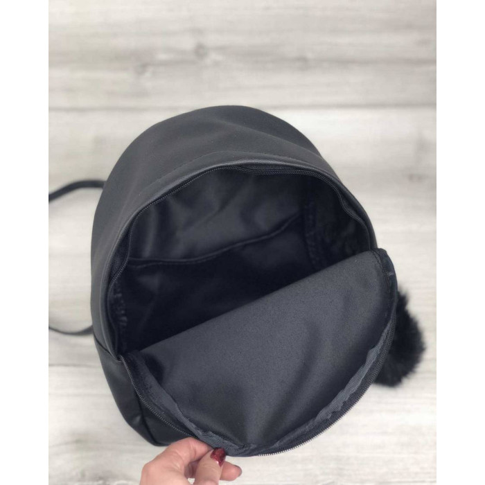 Дополнительно рюкзак украшен меховым пушком на цепочке с карабином.