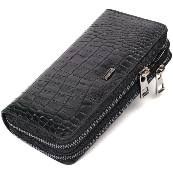 Люксовый мужской клатч в классическом стиле и солидном цвете, из натуральной кожи с тиснением под крокодила. Для максимальной удобности кошелек разделен на два больших отделения, что закрываются на молнии, внутри которых можно без проблем размещать бумажные банкноты, банковские карты и даже смартфон. Аксессуар состоит из четырех отделений для купюр, четырех прилегающих карманов, шестнадцати слотов для кредиток и монетницы на молнии. Имеется также ручка для ладони на тыльной стороне клатча. Продается бумажник в красивой коробке от производителя. Качественный и надежный клатч - именно такой аксессуар должен быть у каждого уважающего себя человека.