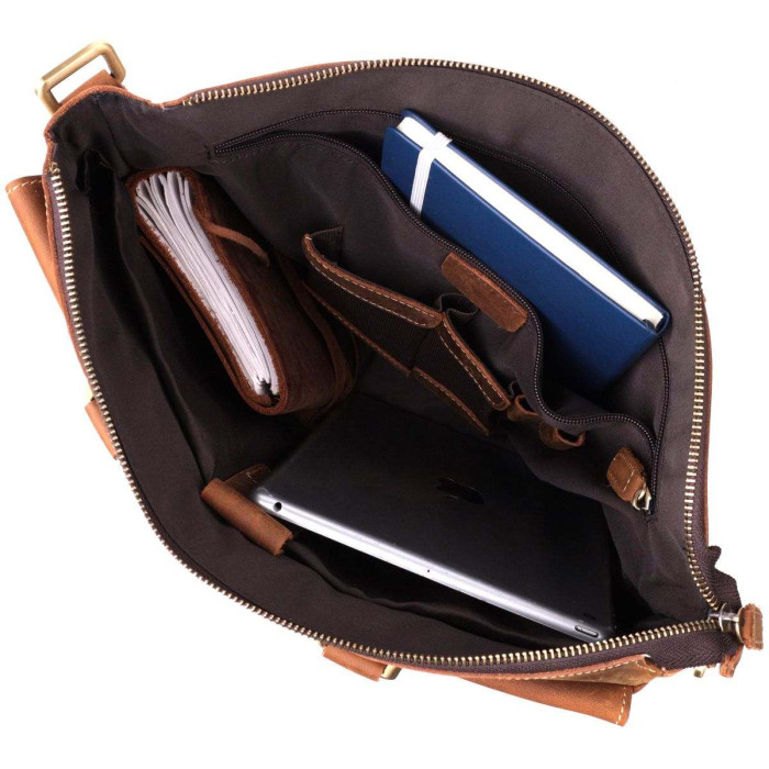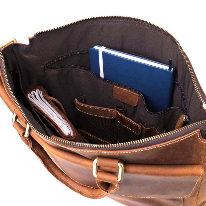 Качественная сумка-портфель из уникальной винтажной кожи коричневого цвета. Сумку можно носить как в руке так и через плече, при помощи текстильного плечевого ремня коричневого цвета. Неотразимая сумка-портфель не оставит равнодушным Вас и Ваше окружение.