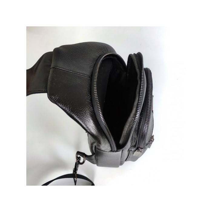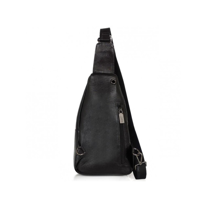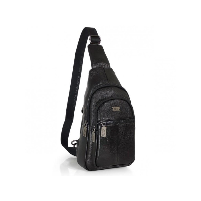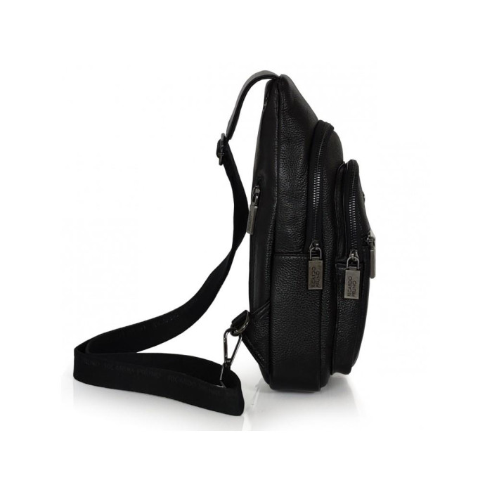 Стильный кожаный мужской слинг Ricardo Pruno A25F-5060A изготовлен из натуральной кожи черного цвета имеющую зернистую текстуру.