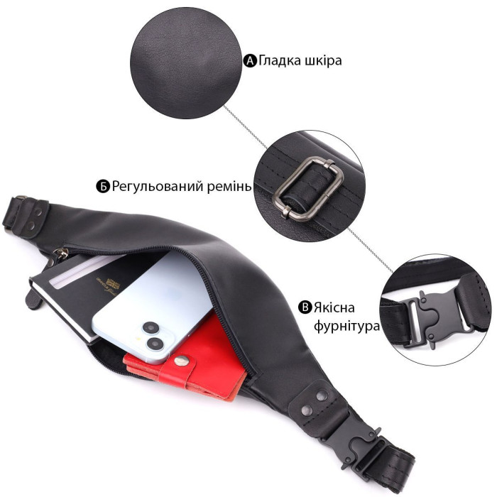 Сумка-бананка Shvigel из гладкой натуральной кожи в чёрном цвете — воплощение элегантности, практичности и высокого качества. Эта мужская сумка-бананка от украинского бренда Shvigel, известного своими кожаными изделиями с 2011 года, создана для тех, кто ценит лаконичный стиль и надежные материалы. Гладкая натуральная кожа премиального качества отличается мягкой текстурой, лёгким благородным блеском и особенно приятна на ощупь. Она подчеркивает статус и вкус владельца, а классический чёрный цвет делает аксессуар универсальным и уместным в любой ситуации — от городской суеты до деловых встреч.
