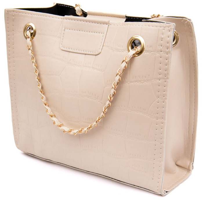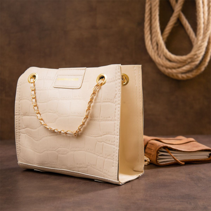 Повседневная сумка для женщин из кожзама под экзотическую кожу. Сумка имеет идеальный размер на каждый день. Аксессуар очень стильный. Дополнена сумка съемным бумажником для вашего удобства. Изделие на нашем сайте в единственном экземпляре. Сумка в пастельном бежевом цвете. Идеально подойдет для нюдового образа. Рекомендуем сумку к покупке по самой выгодной цене.