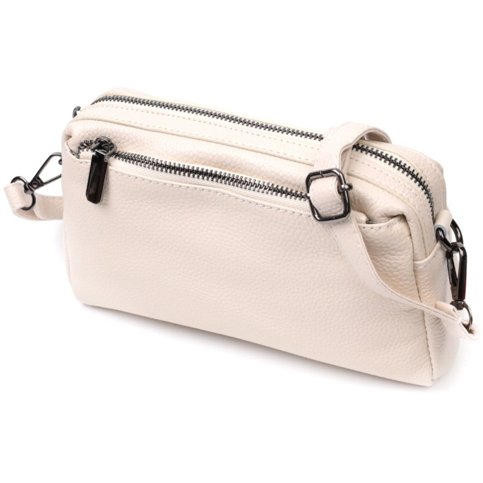 Стильная и удобная женская сумка, на каждый день. Изделие пошито из качественной кожи, которая отлично носится и не теряет свой первоначальный вид. Аксессуар состоит из одного основного отделения, потайного кармана на молнии, кармана открытого типа, двух наружных карманов, что закрываются на молнии. Носить сумку можно в руках, на плече и через плечо, для этого имеется кожаный съемный ремень. В изделии использована качественная фурнитура цвета темного серебра. Универсальный вариант сумки как на вечер так и в качестве сумочки на каждый день.