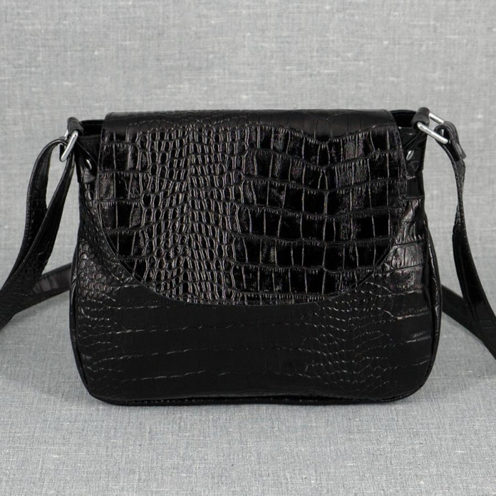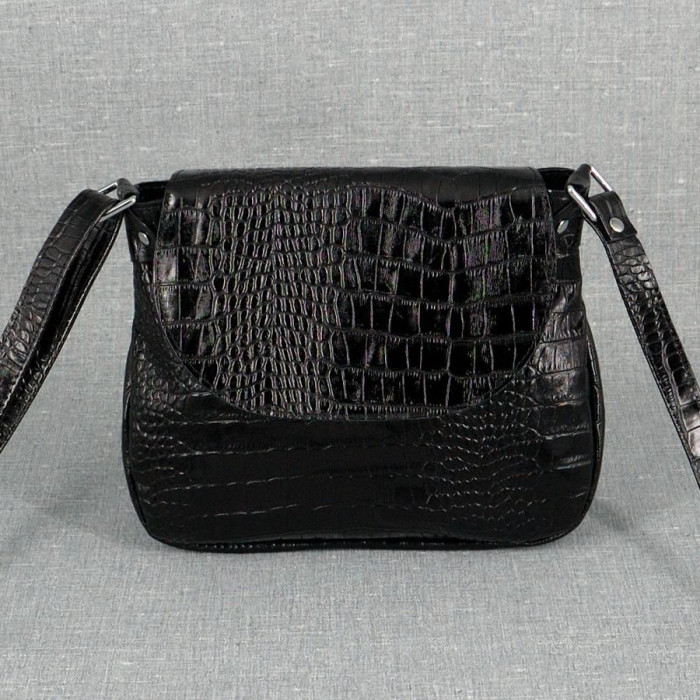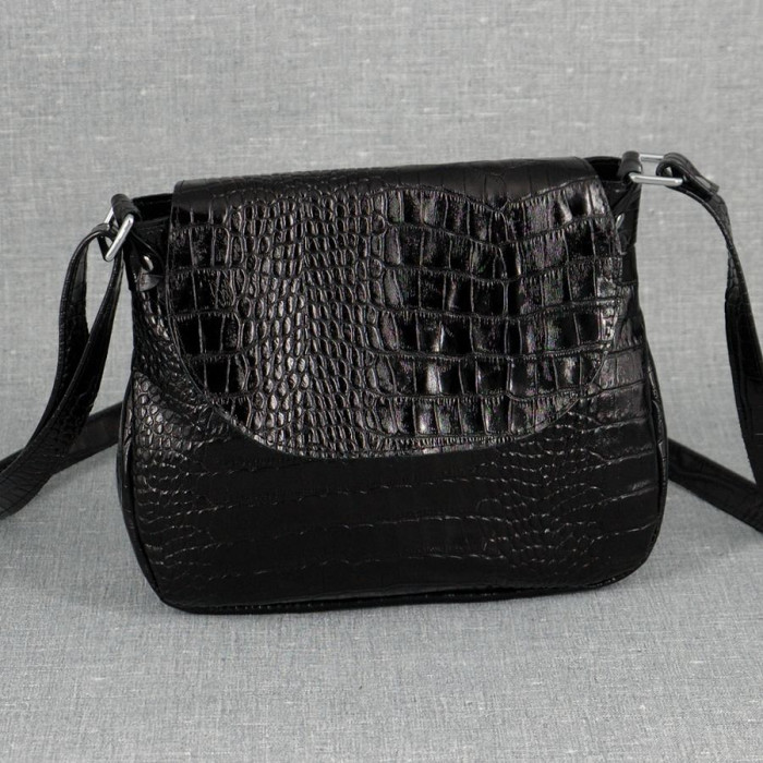 Сумка кожаная женская через плечо 050201 кайман черная изготовленная из натуральной кожи украинского производства