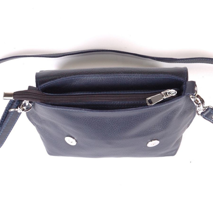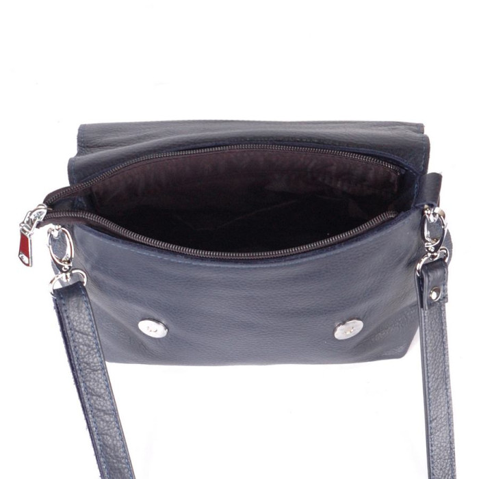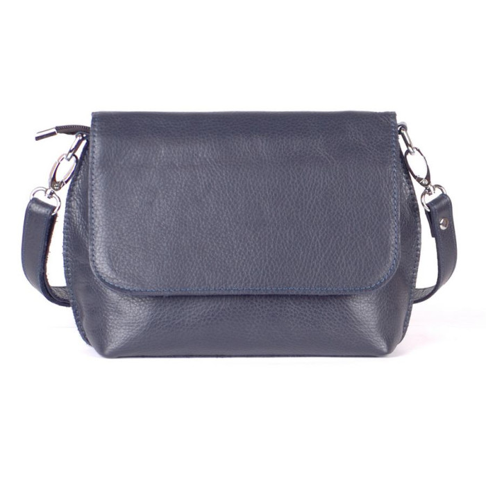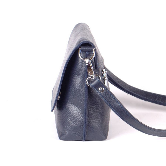 Сумка кожаная женская через плечо 090104 синяя небольшого размера изготовленная из натуральной кожи