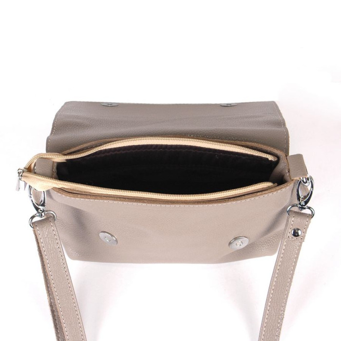 Сумка кожаная женская через плечо 090113 капучино небольшого размера изготовленная из натуральной кожи