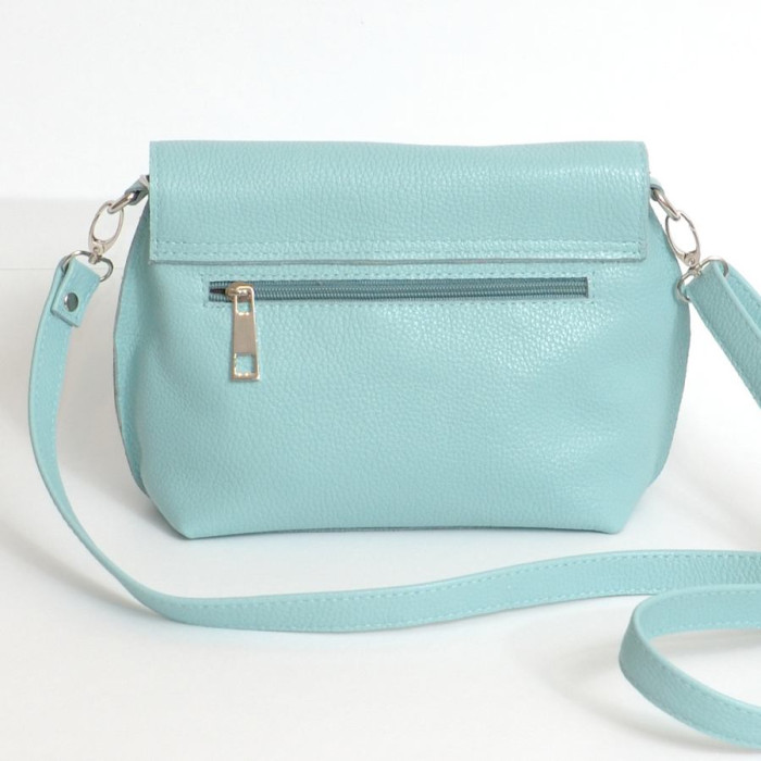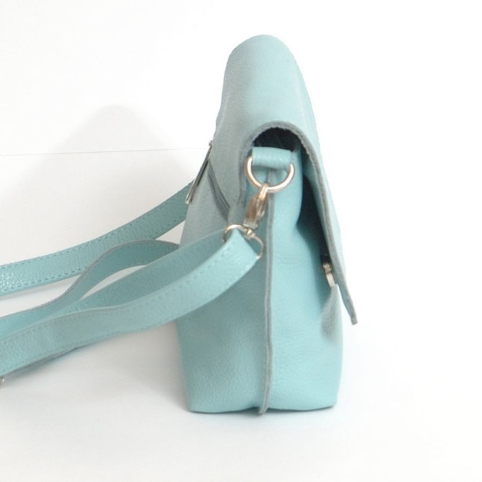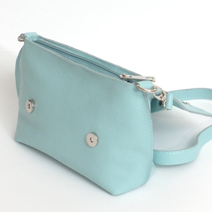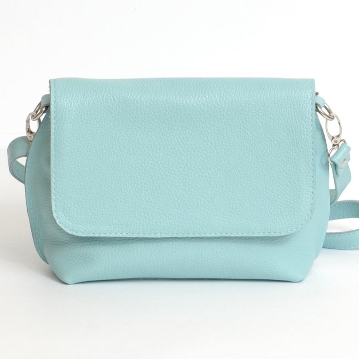 Сумка кожаная женская через плечо 090116 голубой небольшого размера изготовленная из натуральной кожи