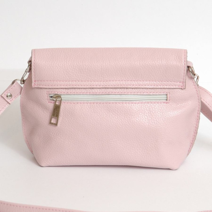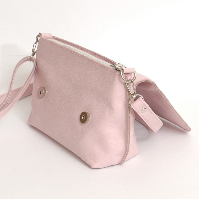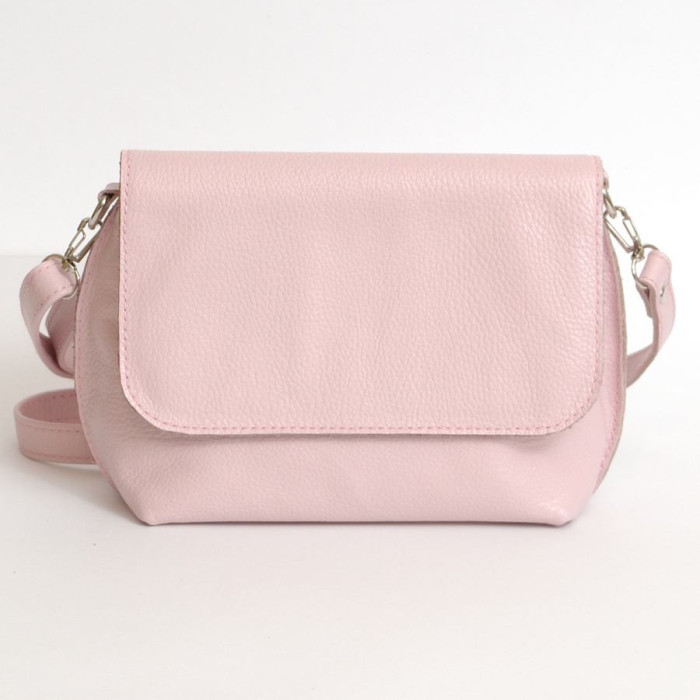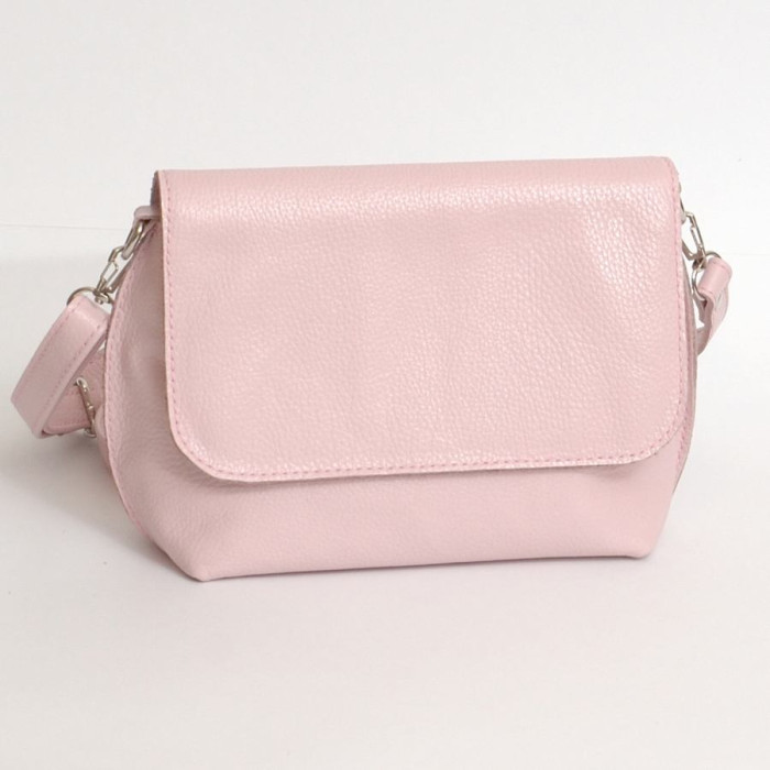 Сумка кожаная женская через плечо 090118 розовая небольшого размера изготовленная из натуральной кожи