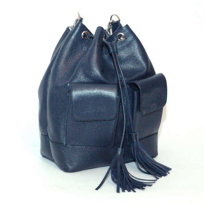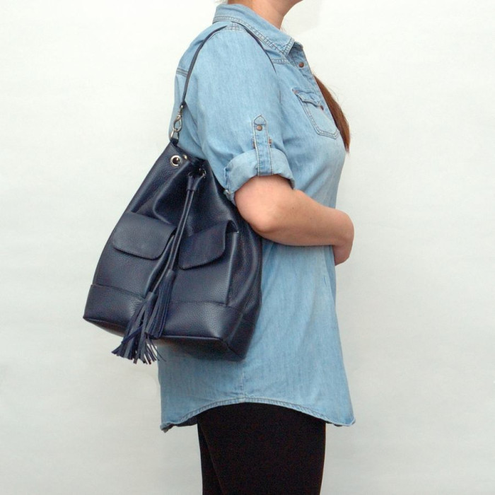 Сумка кожаная женская через плечо 170104 синяя вместительная и удобная