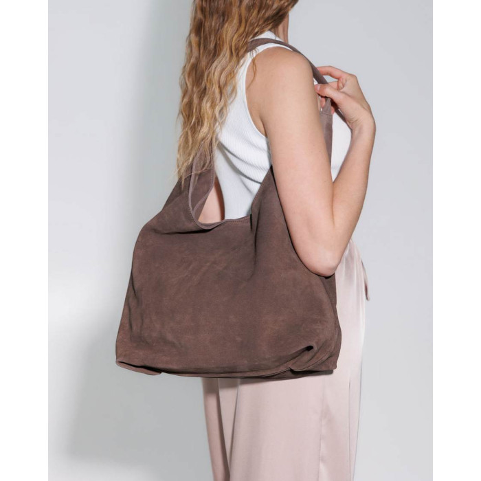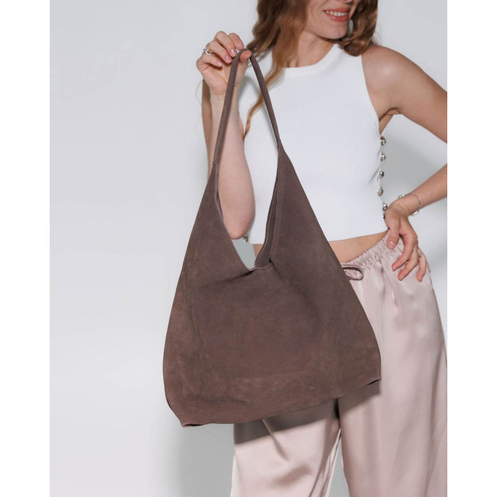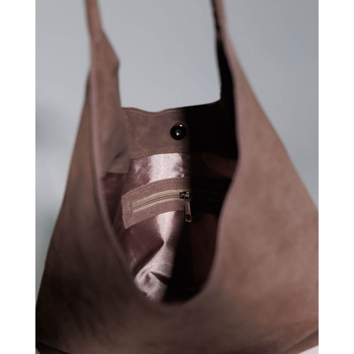 Сумка K72751, цвет капучино, материал сумки натуральная кожа, замша. Внутри сумка имеет один открытый карман и карман на молнии.. Сумка имеет ручку 25 см (от верха сумки).