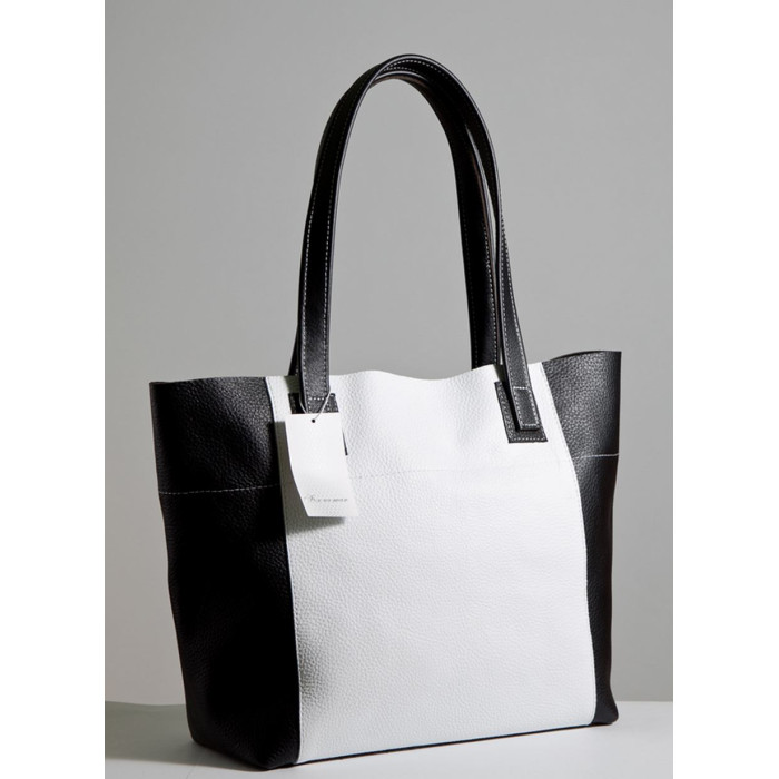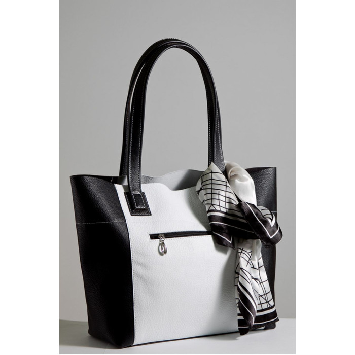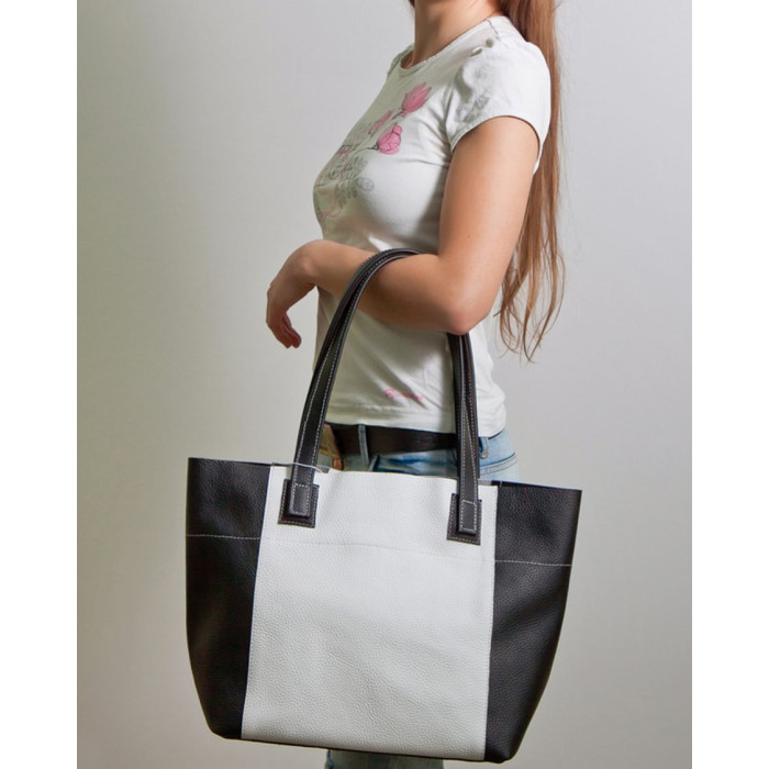 Сумка кожаная женская 030115 черно-белая вместительная и невероятно практичная
