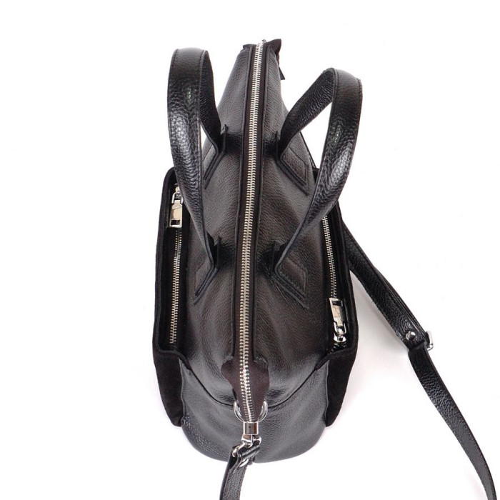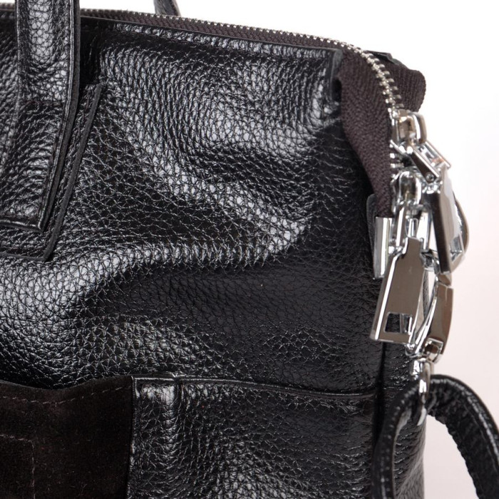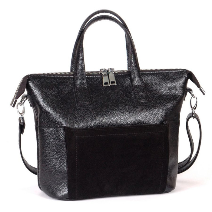 Сумка кожаная женская 450601 с замшевой вставкой черная отлично подойдет для повседневного ношения