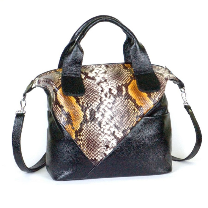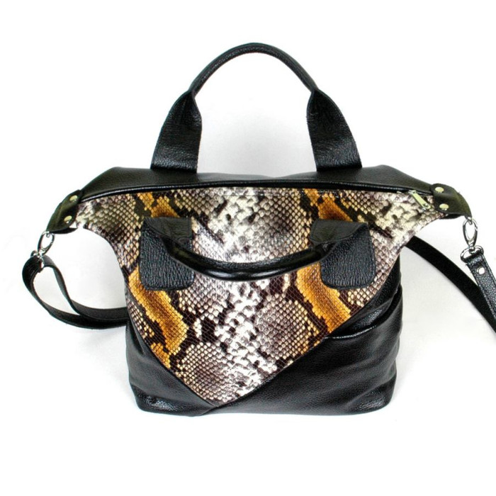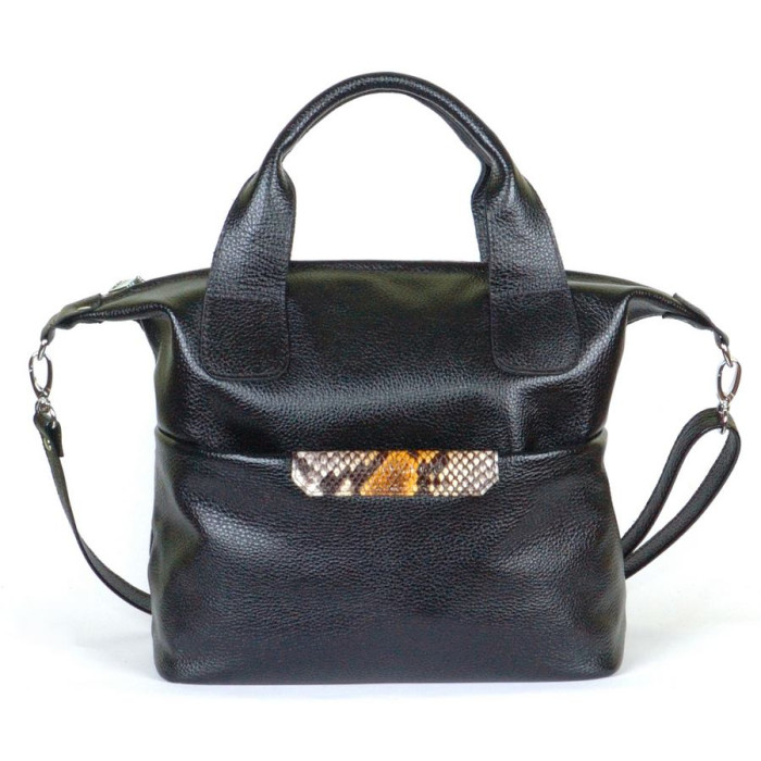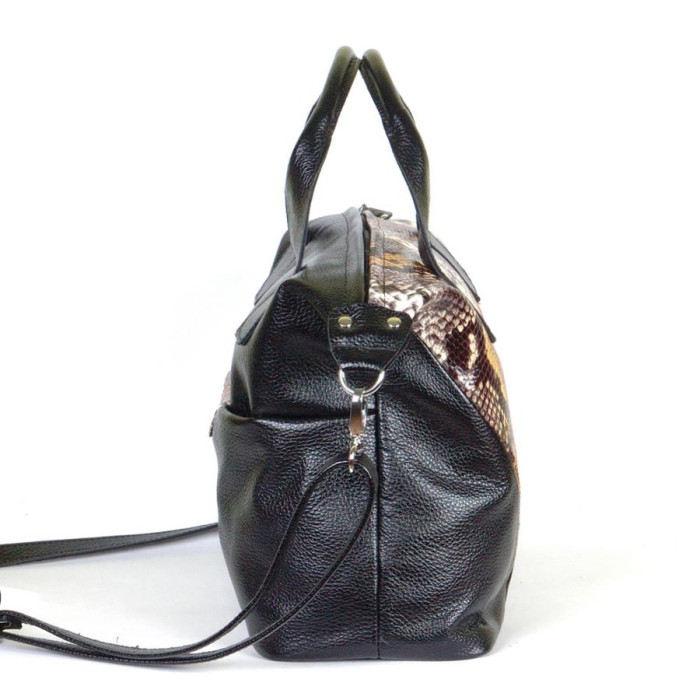 Сумка кожаная женская 490701 питон черная имеет очень необычный и стильный дизайн