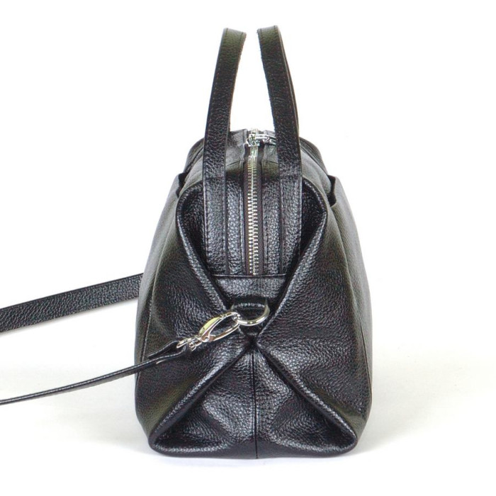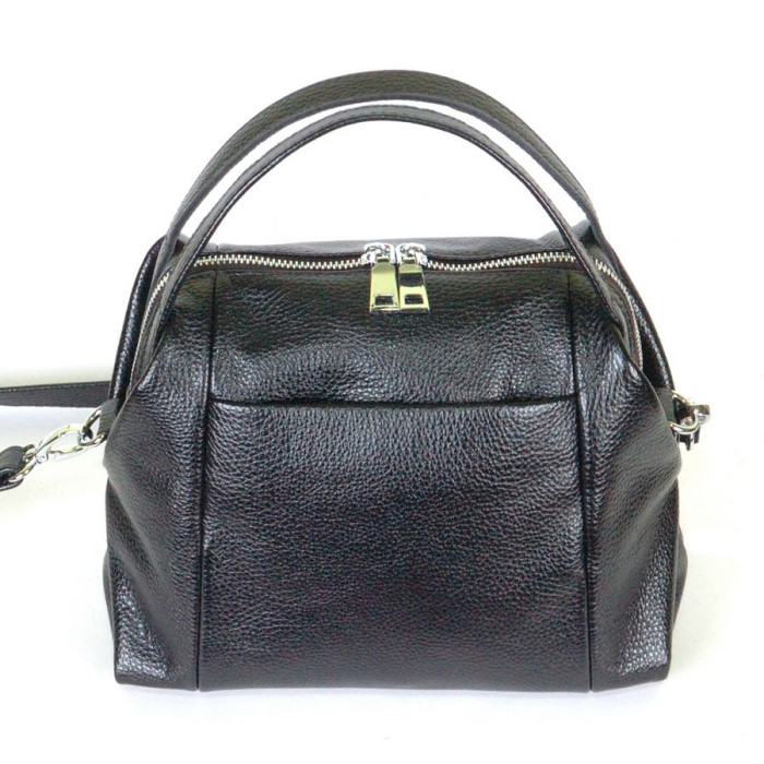 Сумка кожаная женская 510101 черная среднего размера из качественной натуральной кожи