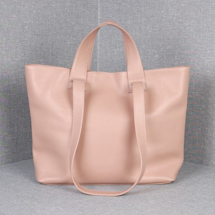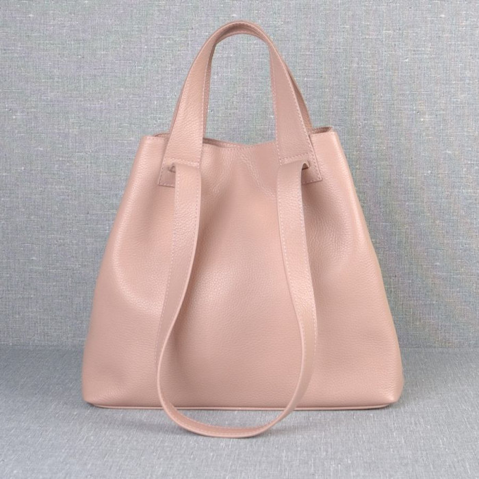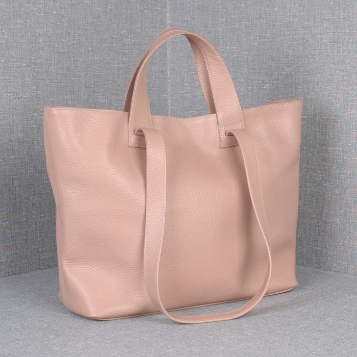 Сумка кожаная женская 560106 пудра с двойными ручками