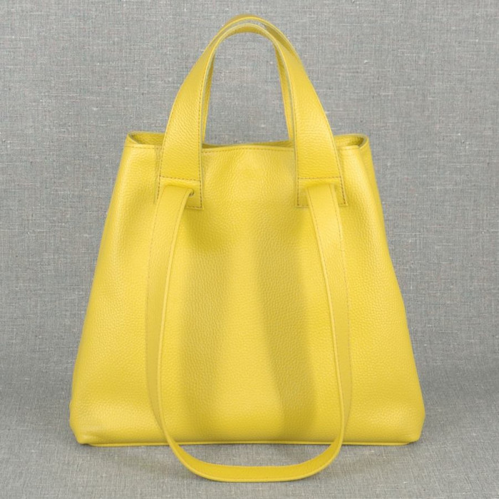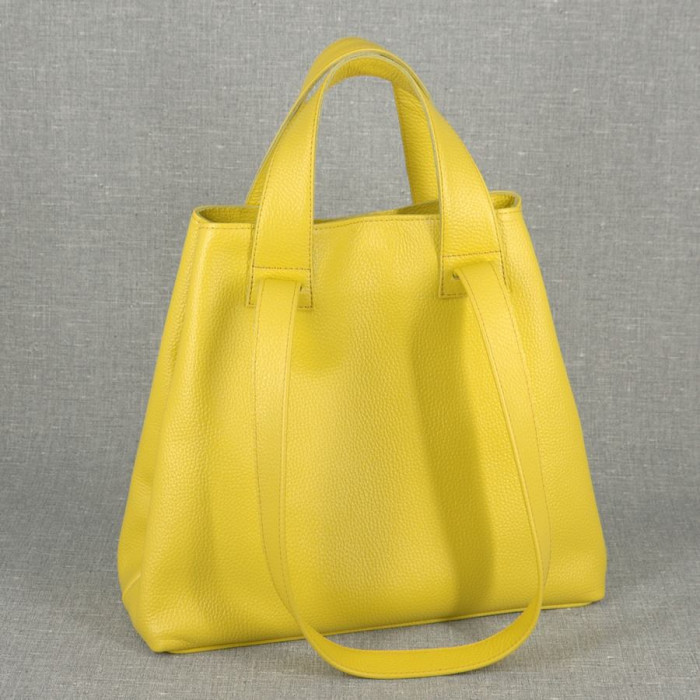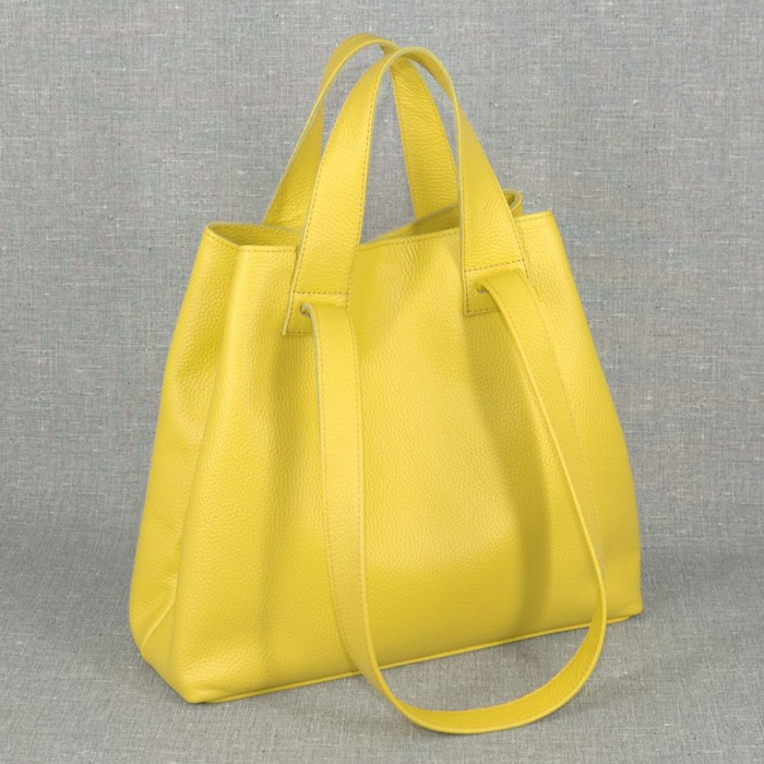 Сумка кожаная женская S560112 желтая с двойными ручками