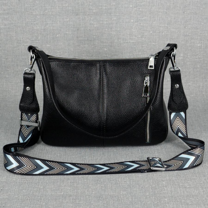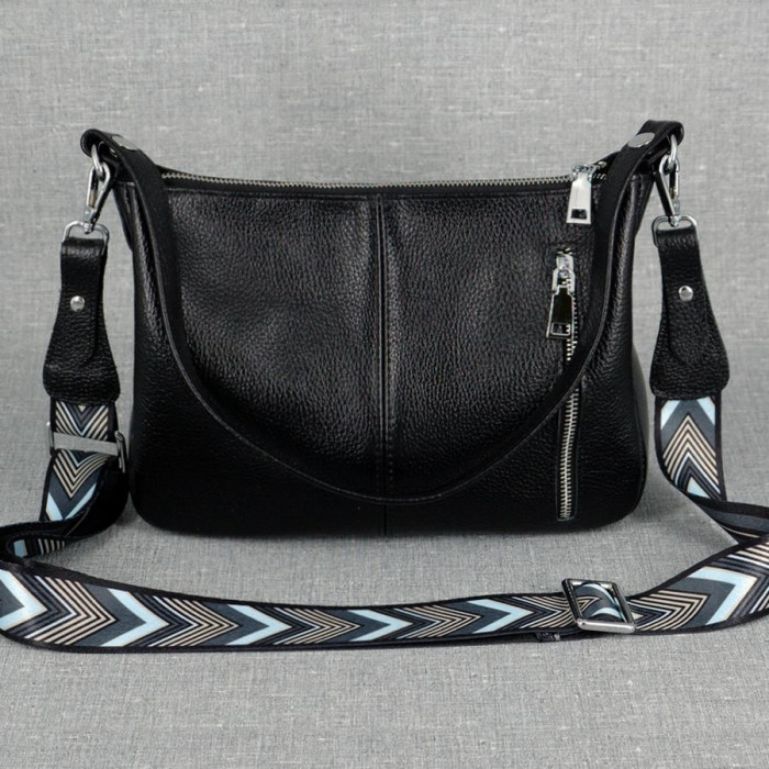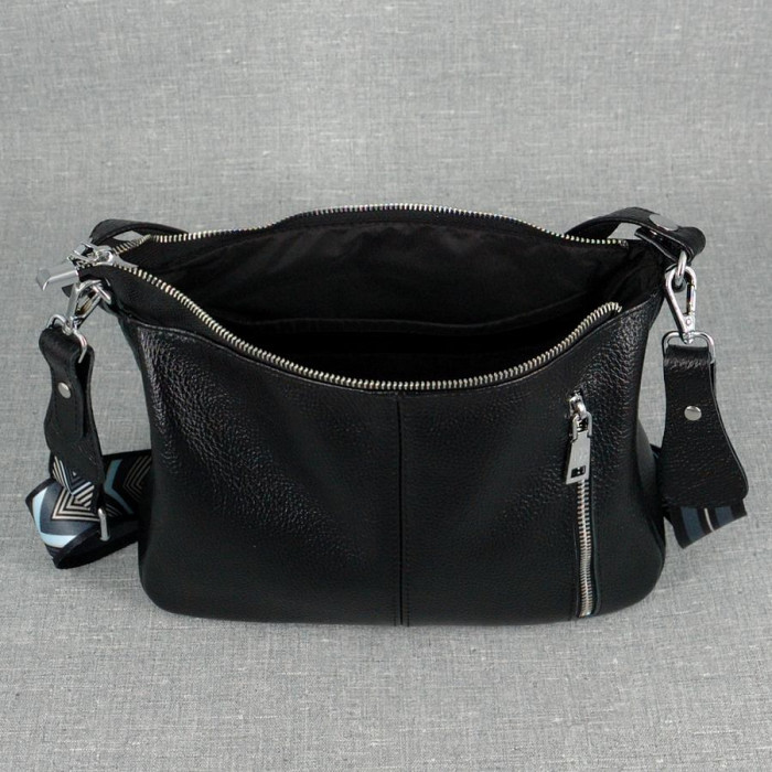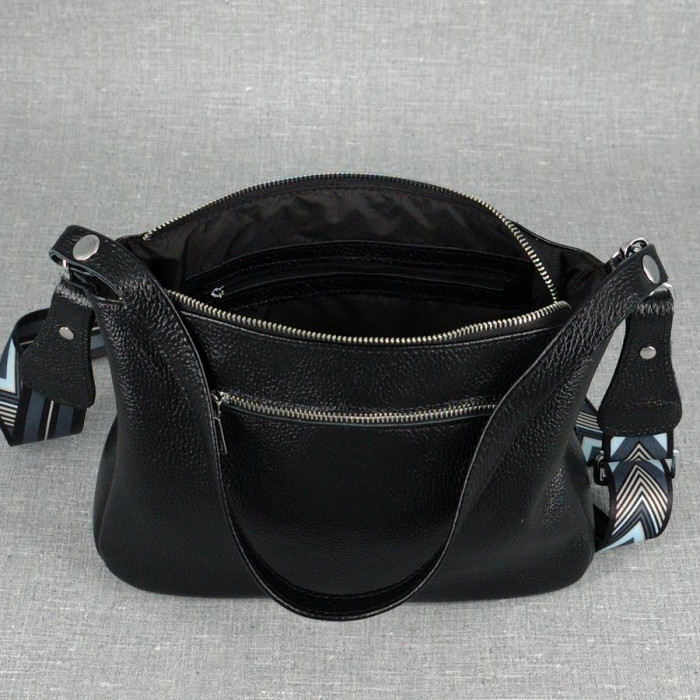 Сумка кожаная женская 590101 черная изготовленная из качественной натуральной кожи с длинным ремнем через плечо.