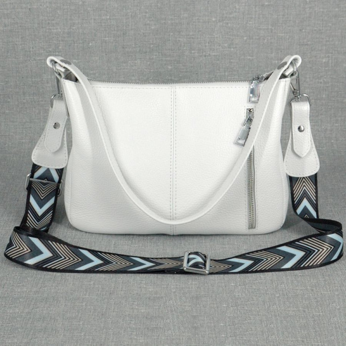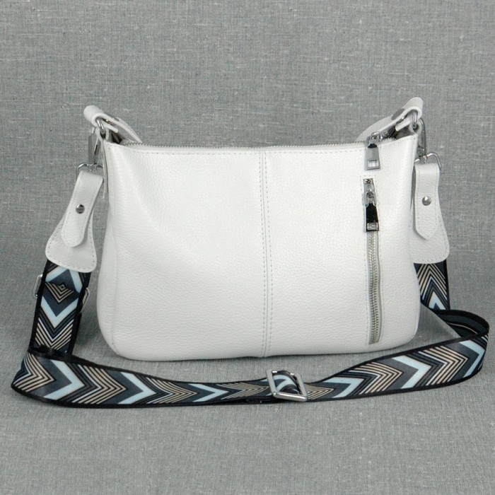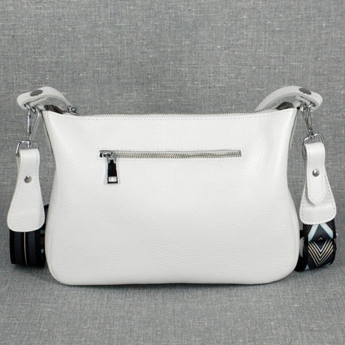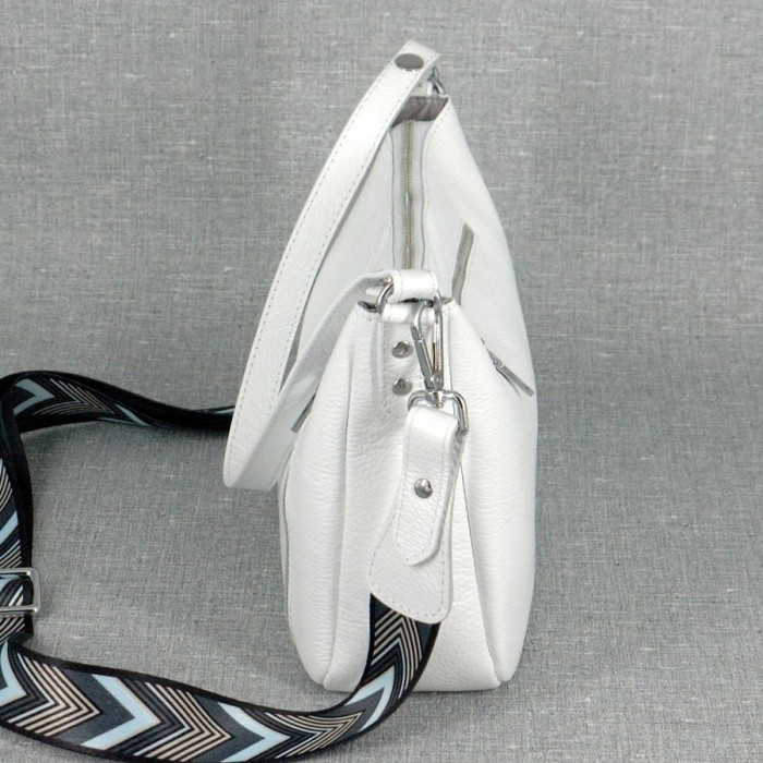 Сумка кожаная женская 590105 белая изготовленная из качественной натуральной кожи с длинным ремнем через плечо.