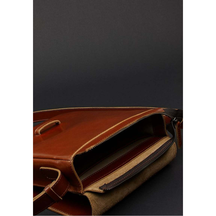 Сумка-мессенджер представлена в двух по-мужски сдержанных и крутых цветах – чёрном и коньячном.