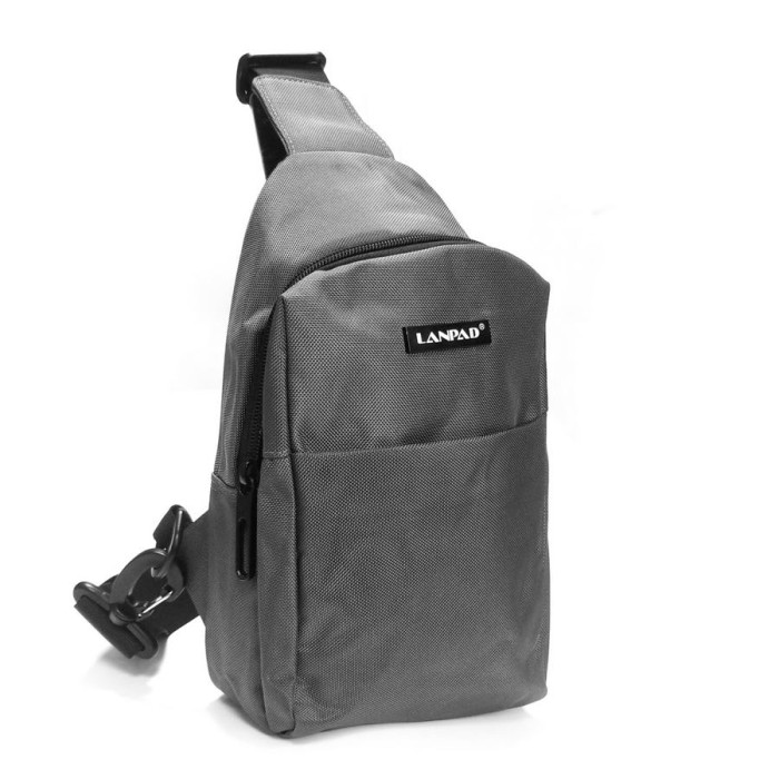 Мужская сумка Lanpad. Одно отделение, закрывается на молнию. Внутри отделения есть карман на молнии и открытый карман. На фасаде расположен карман на застежке-липучке, а на обратной стороне карман на молнии. Плечевой ремень, можно переставлять на левое/правое плечо.