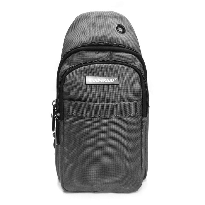 Мужская сумка Lanpad. Два отделения, закрываются на молнию. Внутри одного отделения есть карман на молнии. На фасаде расположен карман на магнитной кнопке, а на обратной стороне карман на молнии. Плечевой ремень, можно переставлять на левое/правое плечо.