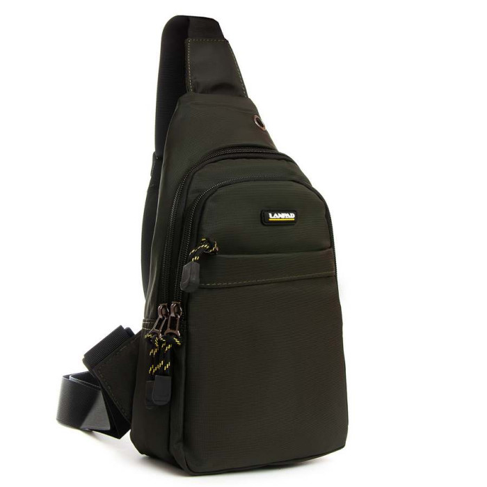 Мужская сумка Lanpad. Два отделения, закрываются на молнию. Внутри основного отделения находится боковой карман на молнии и открытый карман. На фасаде и обратной стороне расположены карманы на молнии.