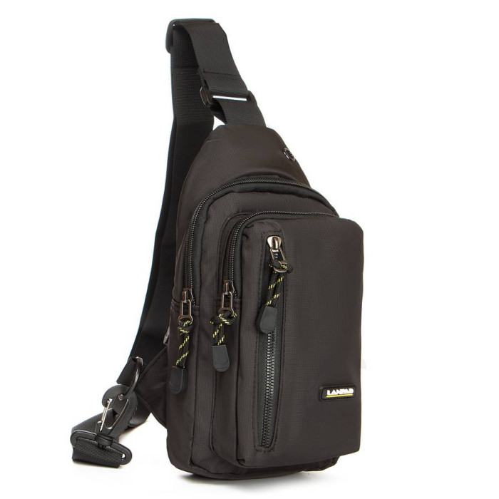 Мужская сумка Lanpad. Одно отделение, закрывается на молнию. Внутри отделения есть боковой открытый карман. На фасаде и обратной стороне сумки находятся большие карманы на молнии.