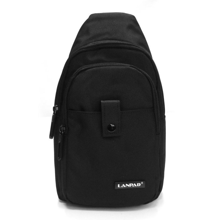 Мужская сумка Lanpad. Два отделения, закрываются на молнию. Внутри одного отделения есть карман на молнии и открытый карман. На фасаде расположен карман на магнитной кнопке, а на обратной стороне карман на молнии. Плечевой ремень, можно переставлять на левое/правое плечо.