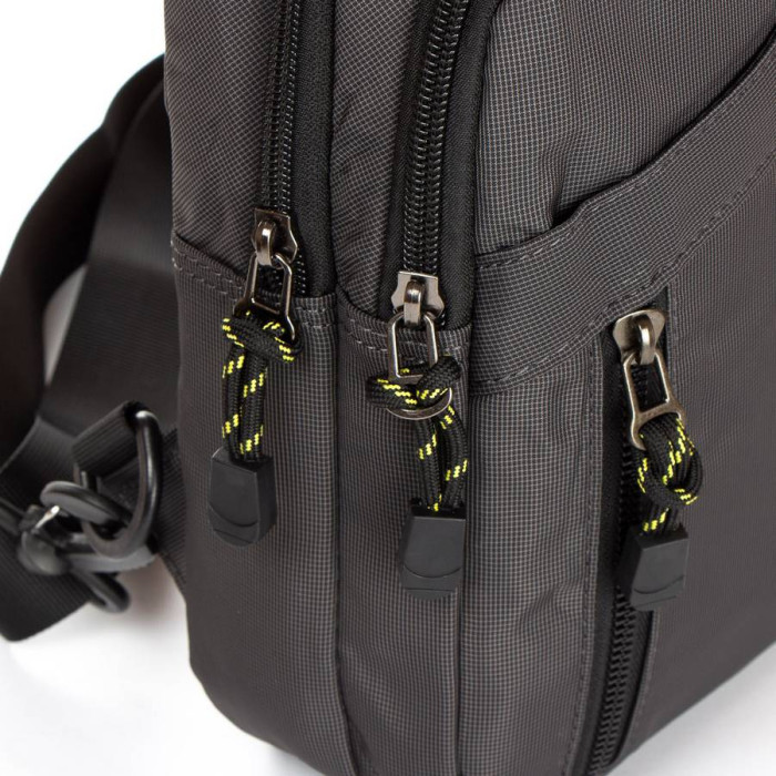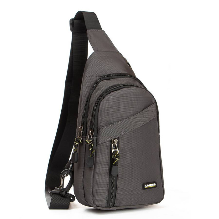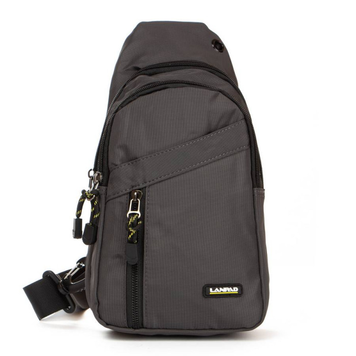 Мужская сумка Lanpad. Два отделения, закрываются на молнию. Внутри основного отделения есть боковой карман на молнии. На фасаде и обратной стороне сумки находятся карманы на молнии, а на фасаде есть еще и открытый карман.