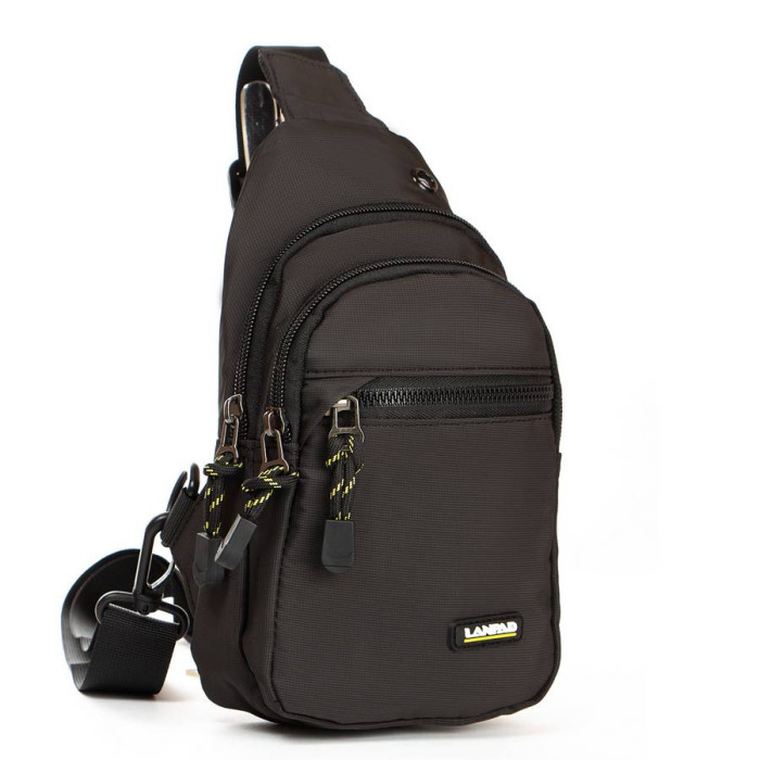 Мужская сумка Lanpad. Два отделения, закрываются на молнию. Внутри основного отделения есть боковой карман на молнии. На фасаде сумки находится карман на молнии.