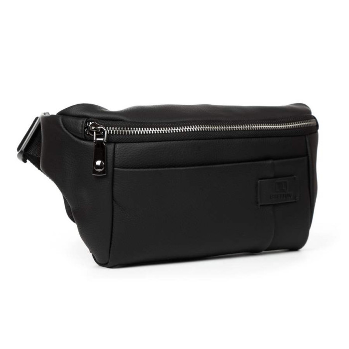 Мужская кожаная сумка Bretton. Можно носить на поясе или через плечо. Одно отделение, закрывается на молнию. Внутри есть боковой открытый карман и карман на молнии. На фасаде есть один карман на магнитной кнопке, а на обратной стороне большой карман на молнии.