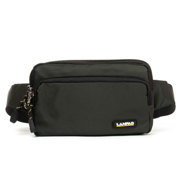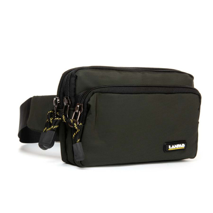Мужская сумка пояс/плечо Lanpad. Два отделения, закрываются на молнии. Внутри есть большой боковой открытый карман. На фасаде находится один карман на молнии.