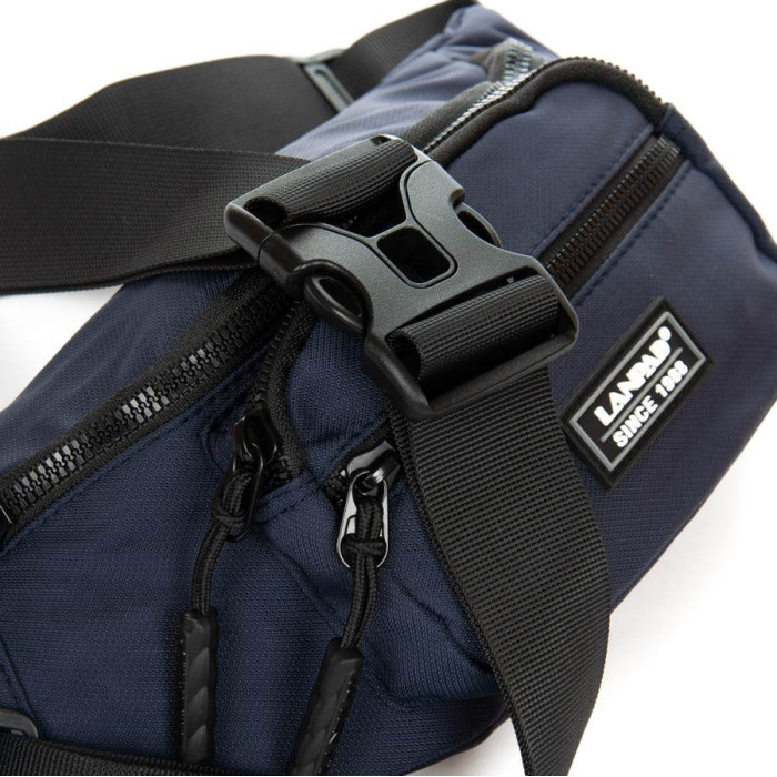 Мужская сумка на пояс/плечо Lanpad. Одно отделение, закрывается на молнию. Внутри есть боковой карман на молнии. На фасаде и на обратной стороне сумки находятся вместительные карманы на молнии.