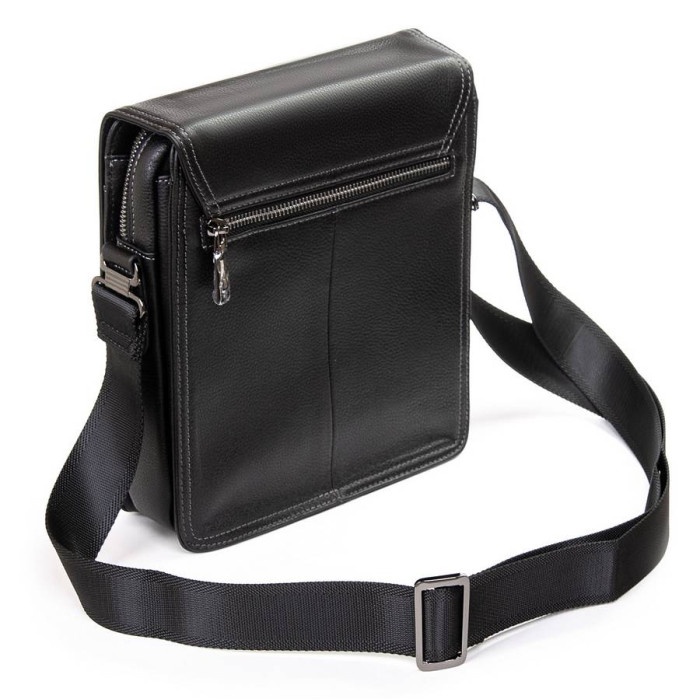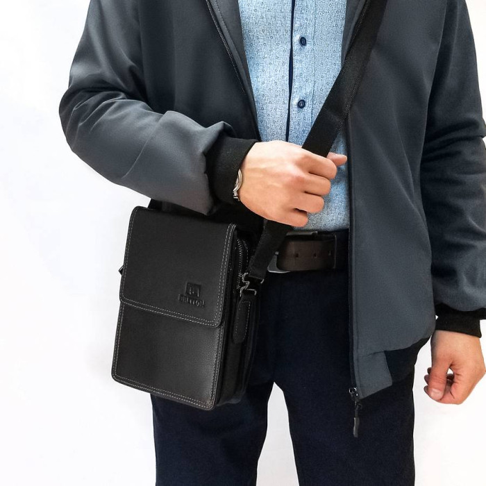 Мужская кожаная сумка-планшет Bretton. Под клапаном находятся три отделения, центральное дополнительно закрывается на молнию. Внутри основного отделения есть боковой открытый карман и карман на молнии. На фасаде сумки есть плоский открытый карман, а на обратной стороне расположен карман на молнии. Регулируемый плечевой ремень.