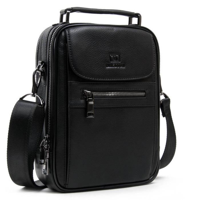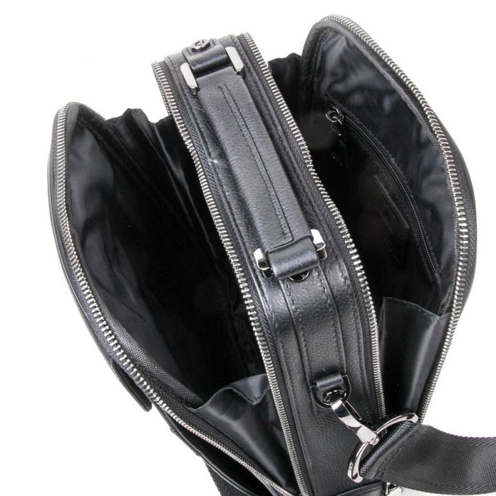 Мужская кожаная каркасная сумка-планшет Bretton. Изготовлена из мягкой натуральной кожи. Два отделения, закрываются на молнию. Внутри отделений есть боковой карман на молнии. Большой карман под клапаном на фасаде. На фасаде и на обратной стороне сумки находятся карманы на молнии. Регулируемый плечевой ремень.