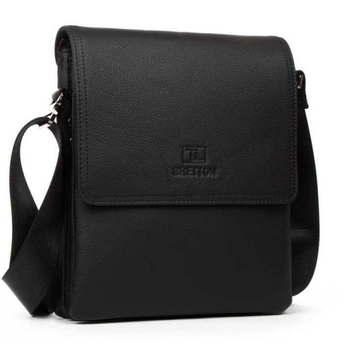 Мужская кожаная сумка-планшет Bretton. Изготовлена из мягкой натуральной кожи. Под клапаном дополнительно закрывается на молнию. Внутри находятся три отделения, разделенные карманом-перегородкой. Внутри отделений есть открытый карман и боковой карман на молнии. На фасаде под клапаном расположен открытый карман, а на обратной стороне сумки находится карман на молнии.