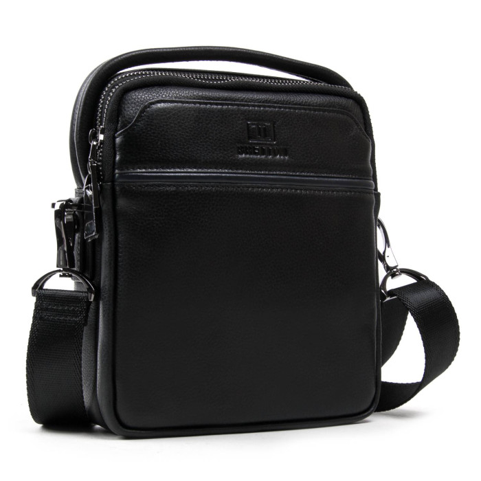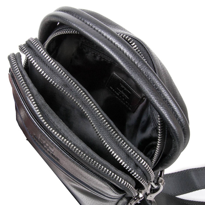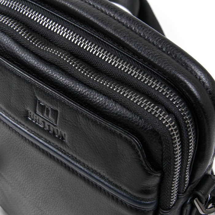 Мужская кожаная сумка-планшет Bretton. Два отделения, закрываются на молнию. Внутри первого отделения есть открытый карман для смартфона, а во втором отделении находится боковой карман на молнии. На фасаде сумки есть карман на магнитной кнопке, а на обратной стороне расположен карман на молнии. Регулируемый плечевой ремень в комплекте.