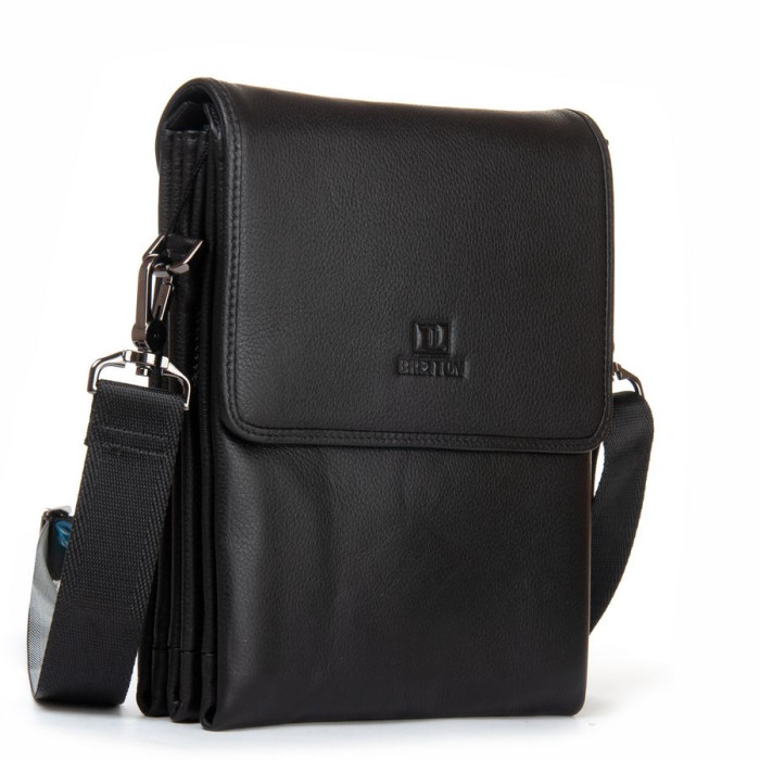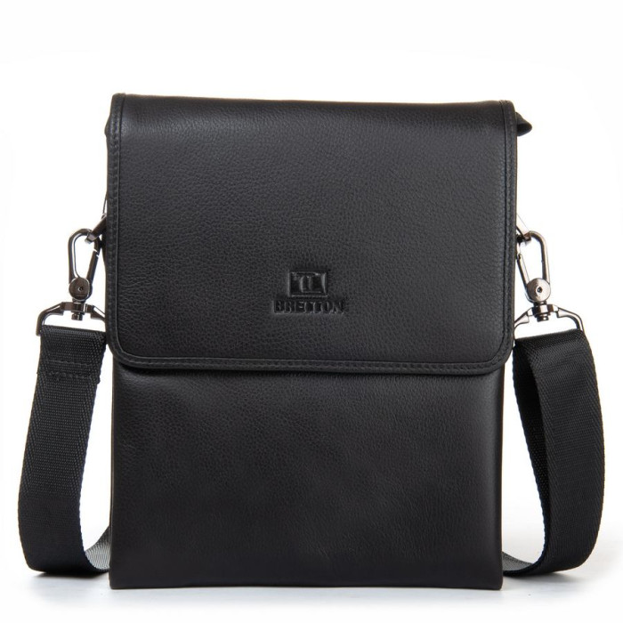 Мужская кожаная сумка-планшет Bretton. Изготовлена из мягкой натуральной кожи. Под клапаном дополнительно закрывается на молнию. Внутри находятся три отделения. Внутри отделений есть открытый карман и боковой карман на молнии. Снаружи сумки на фасаде есть карман под клапаном, а на обратной стороне сумки находится карман на молнии.
