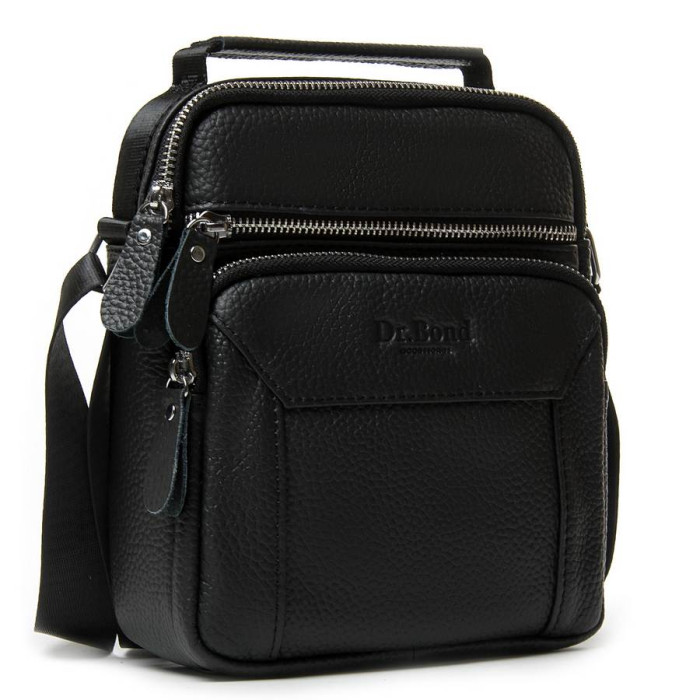 Кожаная мужская сумка-планшет Dr.Bond. Одно отделение, закрывется на молнию. Внутри есть боковой карман на молнии. На фасаде и обратной стороне расположены карманы на молнии. Плечевой ремень регулируется по длине.